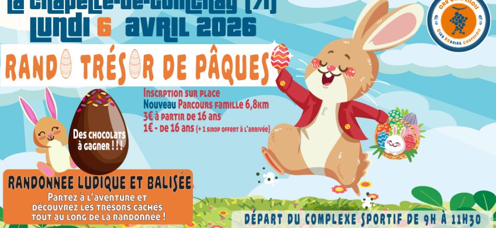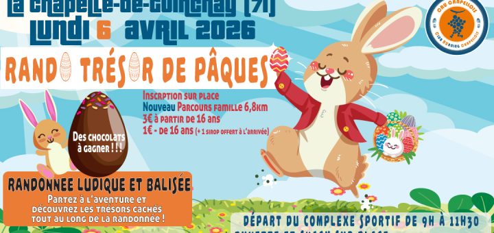 Le CRU chapellois organise une nouvelle édition de sa Rando Trésor le lundi de Pâques ! Il s’agit d’une randonnée ludique et balisée à la recherche des trésors du Beaujolais ! Accessibles à tous...