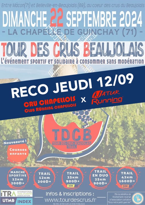 10 jours avant l’événement, nous vous proposons en collaboration avec notre partenaire Natur Running Mâcon de reconnaître une partie des parcours du TDCB millésime 2024.